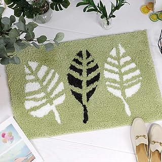 玄関マット キッチンマット 天然素材 北欧 おしゃれ リーフ 屋内 室内 洗える 北欧 滑り止め 滑らない 無地 おしゃれ タイプ 50*80cm マット シャギー マイクロファイバー グリーン 緑 洗濯機OK リーフ キッチンマット