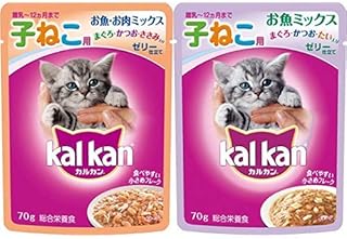 【セット買い】カルカン キャットフード パウチ 12ヵ月までの子ねこ用 お魚・お肉ミックス まぐろ・かつお・ささみ入り 70g×16袋 (まとめ買い) & キャットフード パウチ 12ヵ月までの子ねこ用 お魚ミックス まぐろ・かつお・たい入り 70g×16袋 (まとめ買い)