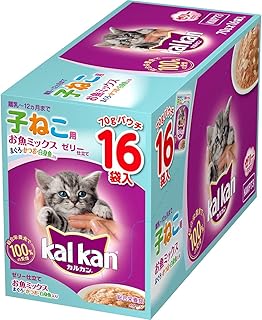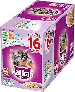 カルカン パウチ 12ヵ月までの子ねこ用 お魚ミックス まぐろ・かつお・白身魚入り キャットフード 70グラム (x 16) (まとめ買い)