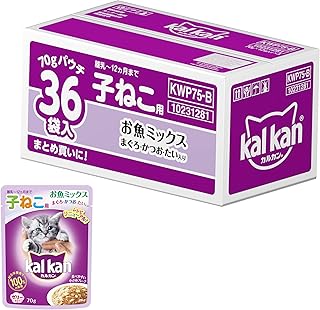 【Amazon.co.jp限定】カルカン パウチ 12ヵ月までの子ねこ用 お魚ミックス まぐろ・かつお・たい入り 70g×36袋(まとめ買い) キャットフード