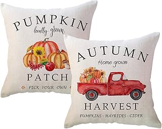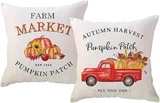 ULOVE LOVE YOURSELF 2パック 農場市場 パンプキンパッチ 装飾用クッションカバー 秋の収穫 赤 パンプキン トラック クッションカバー 枕カバー 18 x 18インチ 秋の農家 季節の装飾