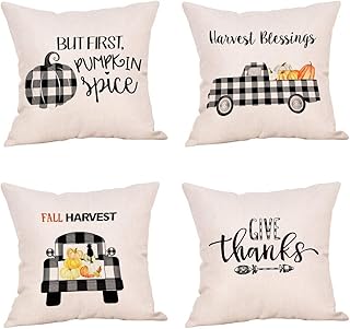 ULOVE LOVE YOURSELF パンプキン スパイスシーズン 秋 装飾用クッションカバー バッファローチェック 格子柄 パンプキン トラック クッションカバー 18 x 18インチ ファームハウス 枕カバー 2枚セット ソファ カウチ用