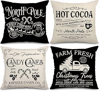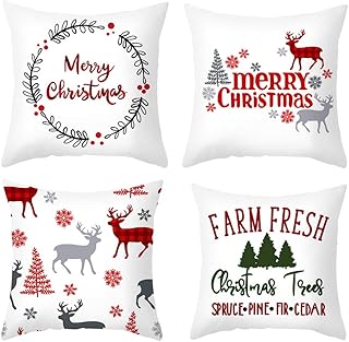 HYOUNINGF クリスマス枕カバー クッションカバー コットンリネン 18 x 18インチ コットンリネン スロー枕カバー 4枚パック
