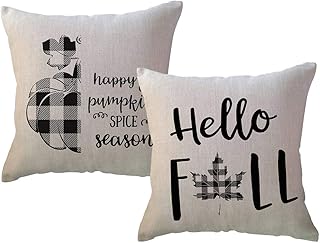 ULOVE LOVE YOURSELF 2パック 秋テーマ 装飾用クッションカバー ファームハウス ブラックチェッカー 格子縞 ハローフォール メープルリーフ ハッピーパンプキン スパイスシーズン クッションカバー 枕カバー 18×18インチ