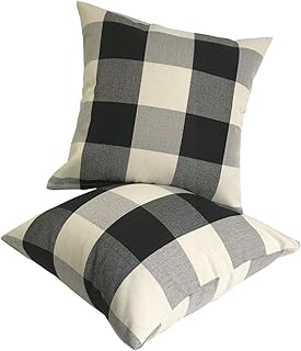ULOVE LOVE YOURSELF 素朴なタータンチェック柄クッションカバー ファームハウス装飾 レトロ バッファローチェック 格子柄 コットンリネン 装飾クッションカバー 18 x 18インチ ブラック&ホワイト 2パック