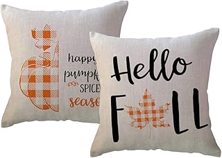 ULOVE LOVE YOURSELF 2パック 秋テーマ 装飾用クッションカバー ファームハウスチェッカー 格子縞 ハローフォール メープルリーフ ハッピーパンプキン スパイスシーズン クッションカバー 枕カバー 18 x 18インチ