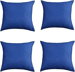 Qeedy 4枚パック コットンリネン スローピローケース 4枚セット ネイビーブルーパターン クッションカバー ホームソファ装飾 洗濯可能 ソファベッド用スローピローカバー 18 x 18インチ (ブルー)