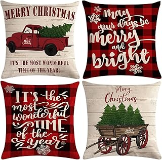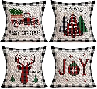 ULOVE LOVE YOURSELF クリスマスホームデコレーション スロー枕カバー 冬休み バッファローチェック ファームハウス コットンリネン クッションカバー 18 x 18インチ 4枚セット