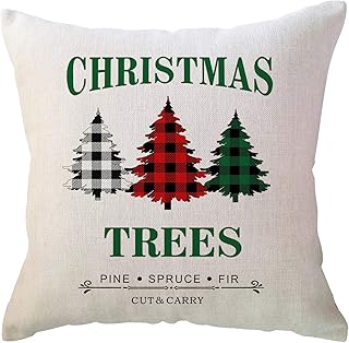 ULOVE LOVE YOURSELF ファームハウス クリスマス クッションカバー 18 x 18インチ レッド ブラック グリーン クリスマスツリーバッファローチェック格子柄 冬休日 装飾クッションカバー カウチ/ソファ用