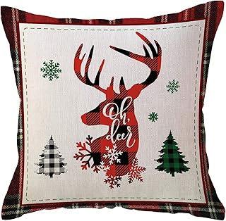 ULOVE LOVE YOURSELF Oh My Deer クリスマス スロー枕カバー ファームハウス バッファロー チェック チェック柄 クッションカバー 冬 休日 装飾枕カバー ソファ用 18 x 18インチ