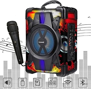 LiyuanQ Bluetoothスピーカー ポータブルワイヤレススピーカー マイク付き サブウーファー 重低音 ワイヤレス 屋外 屋内 パーティー スピーカー MP3プレーヤー スピーカー FMラジオ オーディオ録音 TFカード/USB対応
