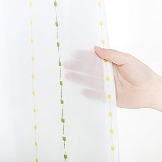 Bedsure レースカーテン ストライプ イエローグリーン花柄 遮熱 保温 UVカット 幅100cmx丈198cm 2枚組 省エネ おしゃれ 春夏