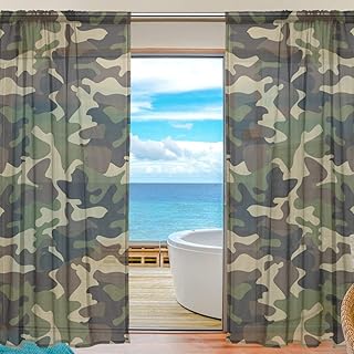 ミラーレースカーテン 遮光 遮熱 外から見えにくい カモフラージュ柄 迷彩 レースカーテン 出窓 ドアカーテン シェードカーテン 装飾ホーム、ウインドウ窓、寝室、居間、子供の部屋用 おしゃれ UVカット 薄い (巾140cm×丈200cm-2枚組) Natax