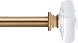 MODE Simplicity シングルカーテンロッドセット クリアスクエアフィニアル付き 32~90インチ マルチカラー Fits 32' - 90' wide Windows ゴールド