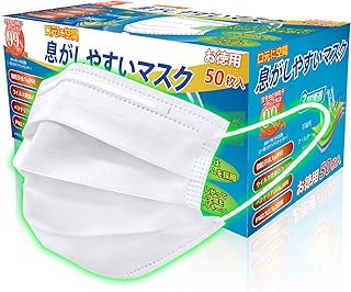 マスク 使い捨てマスク 不織布 [日本国内検品] 3層構造高密度フィルター素材 お出かけ安心 通気性 ふつうサイズ 男女兼用 箱付き 50枚入り マスクバンド1枚付き