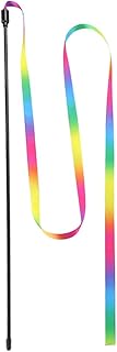 POPETPOP 3本 猫じゃらし 釣り竿 ねこおもちゃ レインボー リボン じゃれ猫 釣竿 羽根 ぶらぶら ペットグッズ ねこ用品